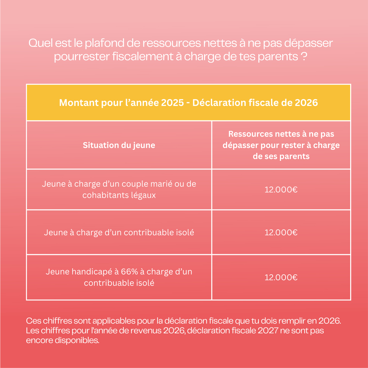 Ce plafond-ci détermine le montant pour rester fiscalement à charge de tes parents.